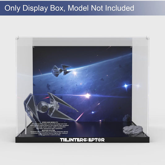Acrylic Display Case for Lego Star Wars TIE Interceptor 75382 Building Set Clear Acrylic Plate with Base & Painted Background