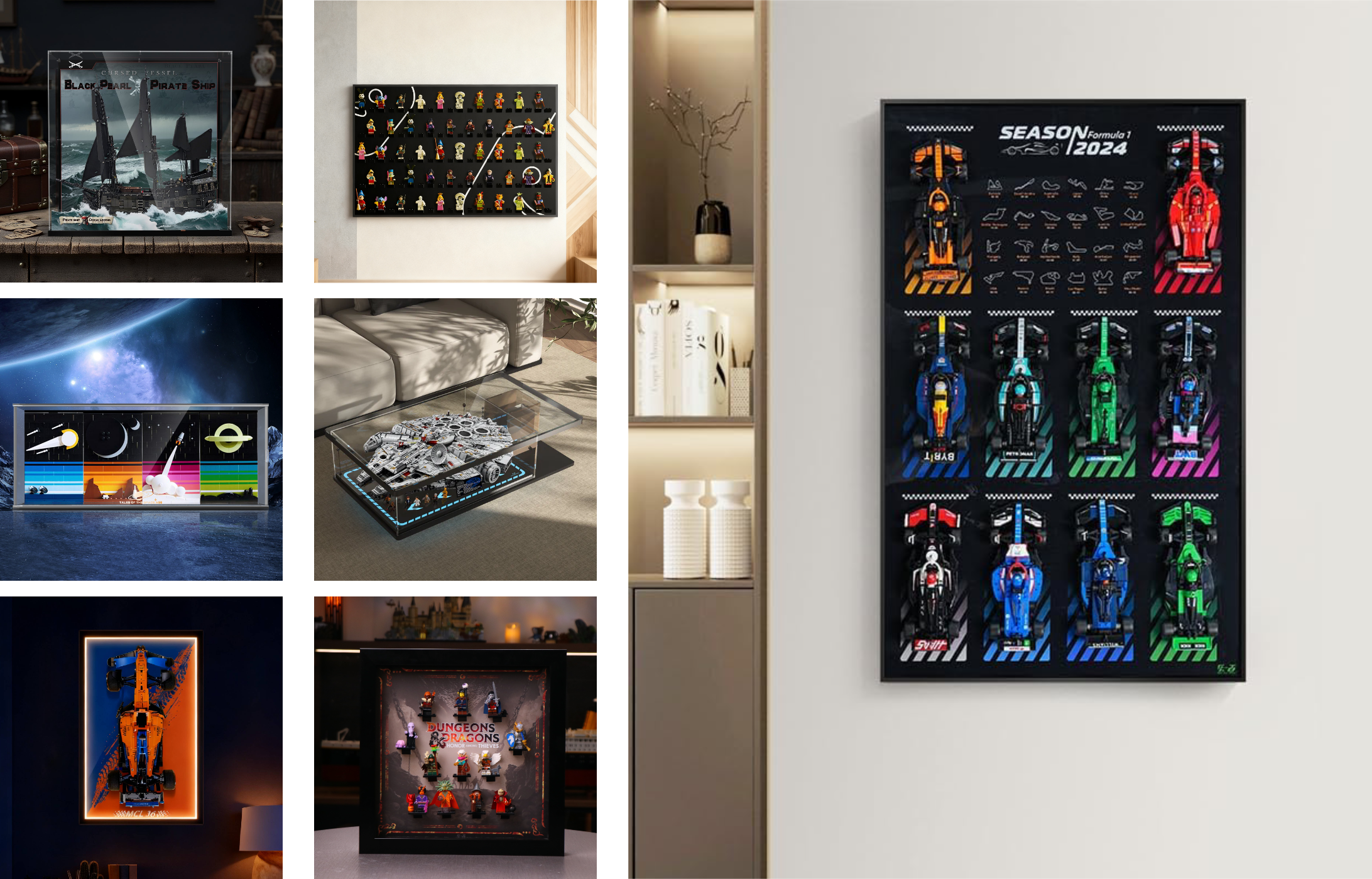 2. Acrylic products tested with LEGO models: repeated assembly/load trials confirm long-term sturdiness, no warping