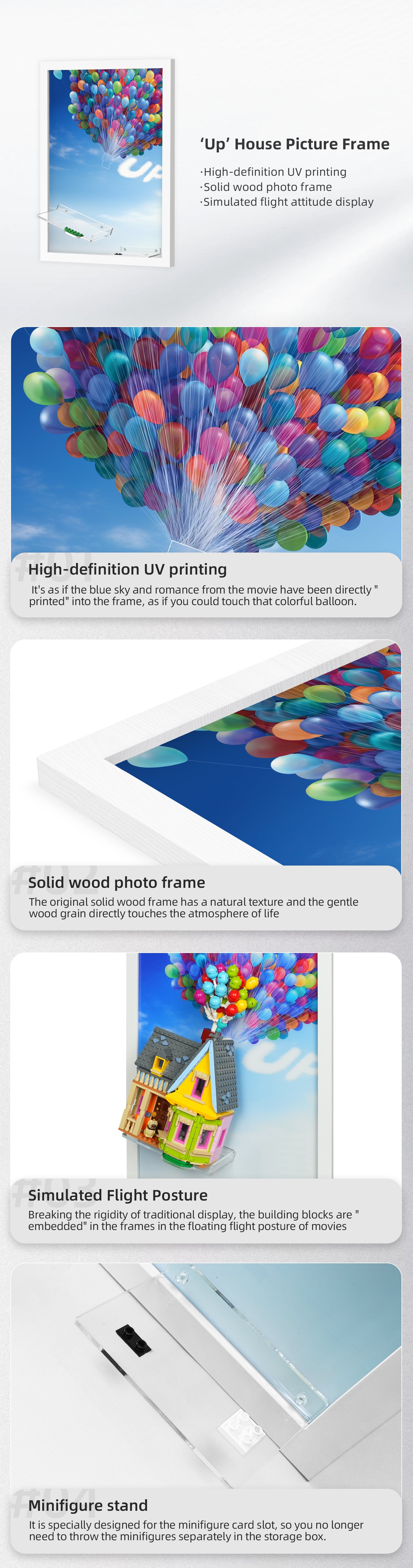 This premium acrylic display wall mount is specifically designed for the LEGO® Disney™ 43217 UP House set. Showcase your beloved UP House in a stunning floating display that protects your build while making it a centerpiece of your room.
