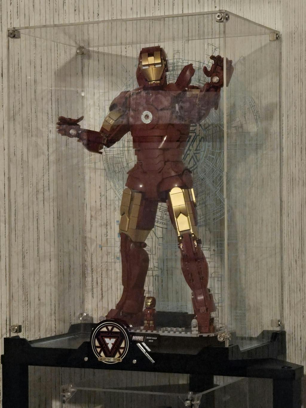 This premium acrylic display case is specifically designed for the LEGO® Marvel™ 76344 Iron Man Mark 3 Collectors' Edition. Featuring integrated USB-powered LED lighting, this display case illuminates your Iron Man masterpiece with a stunning glow effect that brings Tony Stark's iconic armor to life.